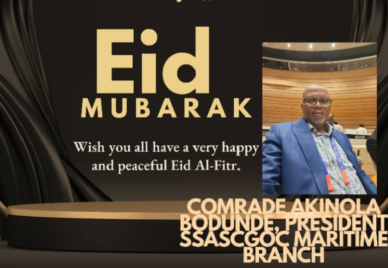 “Once again, on behalf of the SSASCGOC Maritime Branch , we wish you a joyous and memorable Sallah. Eid Mubarak!” Comrade Akinola Bodunde,