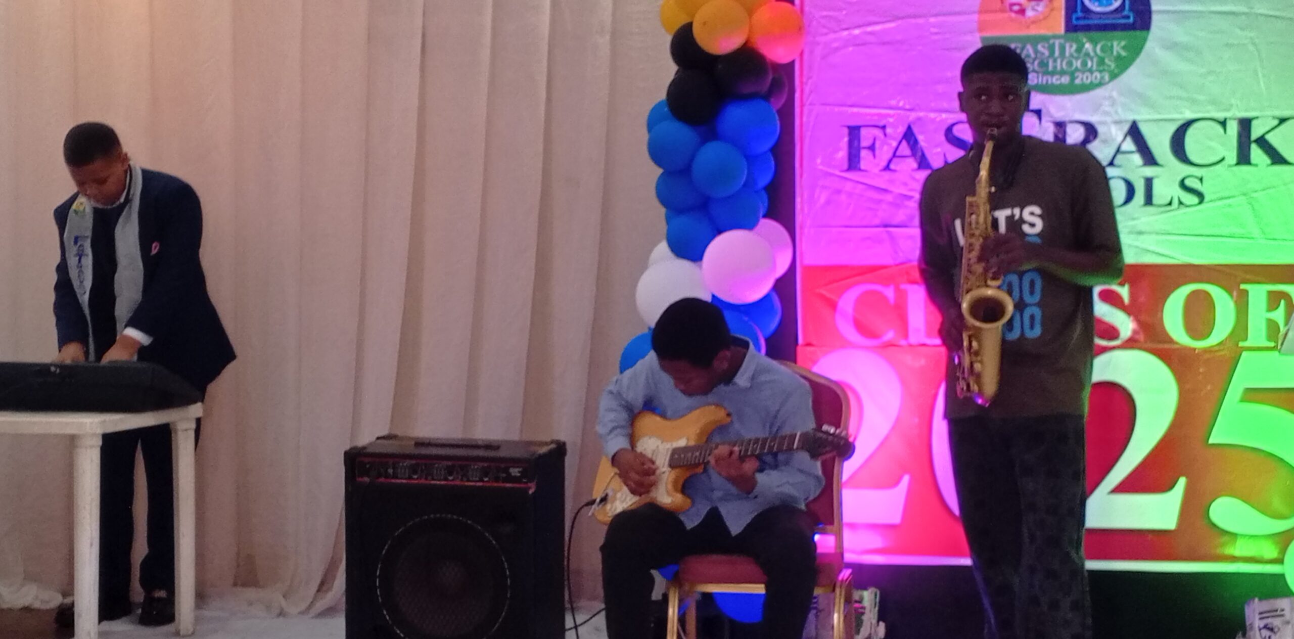 Ejiro and Kevwe Sese Atina on Friday, thrilled parents, students and teachers at the graduation ceremony of Fastrack Schools in Festac town, Lagos to a sterling jazzical music performance.