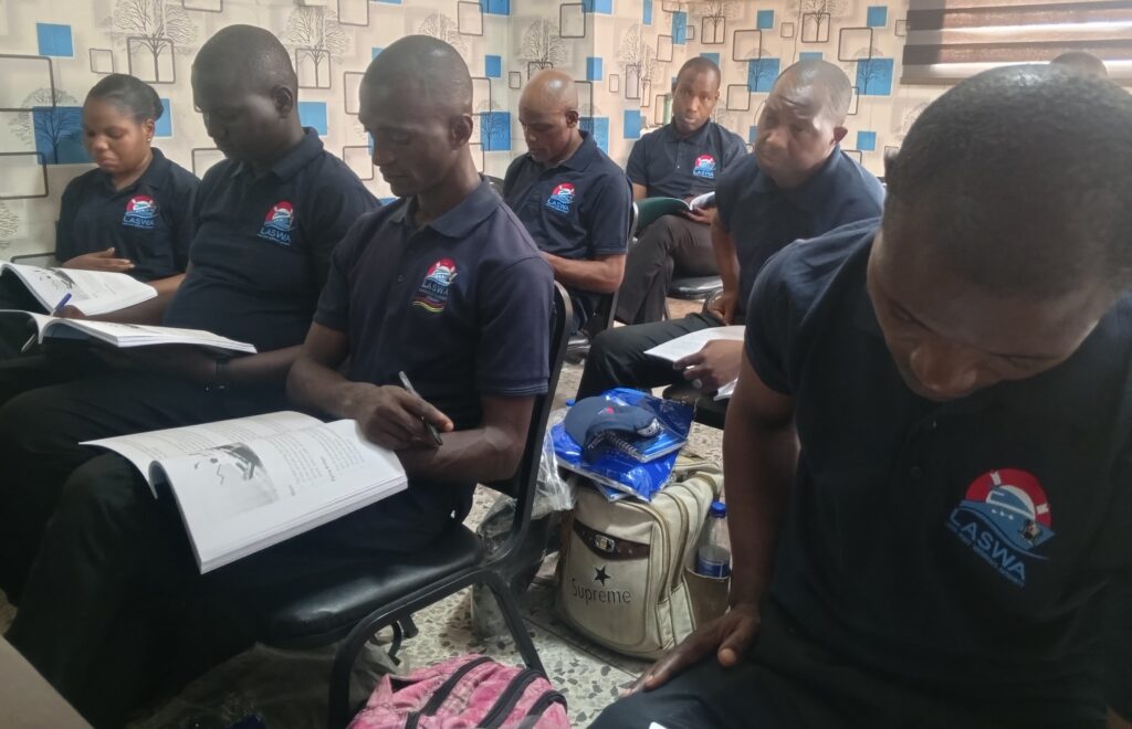 Some of the LASWA staff at the training programme put together by Bourdillion Marine and Technical on Monday in Lagos.